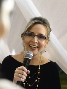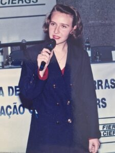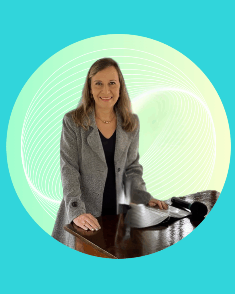 Olá, eu sou a Audren Calabrez e falar em público faz parte da minha trajetória há mais de 30 anos. Comecei no estágio, com pequenas palestras, e evoluí para apresentações em empresas, treinamentos, congressos e eventos pelo Brasil, tanto no contexto corporativo, quanto social.